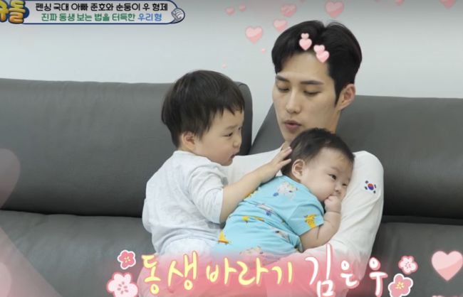 이어 첫째 은우는 동생 정우가 예쁜 듯 눈을 떼지 못 했다. 두 아들이 사이좋게 도리도리하는 모습이 심쿵하게 했다.