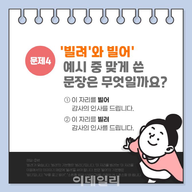 이 카드뉴스는 이데일리, 문화체육관광부·㈔국어문화원연합회·세종국어문화원과 함께 ‘쉬운 우리말 쓰기’ 사업 일환으로 진행한 기사 입니다.