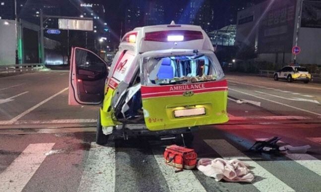 로켓처럼 구급차 들이받아 환자보호자 즉사...무보험 40대 구속