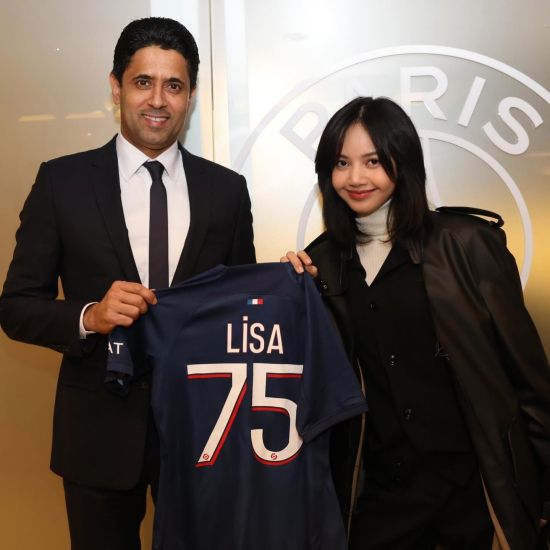 나세르 알 켈라이피 PSG 회장은 리사의 이름이 새겨진 구단 홈 유니폼을 들고 함께 사진을 찍으며 환영했다.