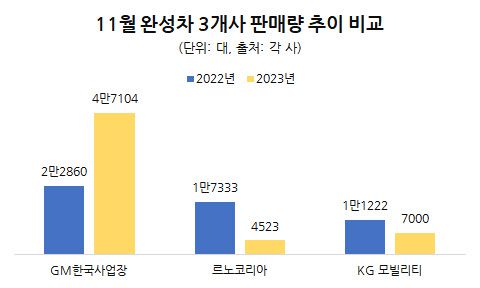 GM한국사업장은 쉐보레 트랙스 크로스오버와 트레일블레이저 등 글로벌 전략 차종을 중심으로 판매량을 대폭 확대했다. GM한국사업장의 지난달 판매량은 4만7104대로 지난해보다 106.1%나 증가했다. 특히 해외 판매는 4만4088대로 실적 대부분을 책임졌다. 트랙스 크로스오버는 지난달 총 2만5826대가 해외 시장에 판매되며 실적을 견인했고 트레일블레이저는 총 1만8262대 팔리며 뒤를 받쳤다. GM한국사업장은 내수 시장에서는 전년 동월 대비 46.6% 늘어난 3016대의 판매를 기록했다.
