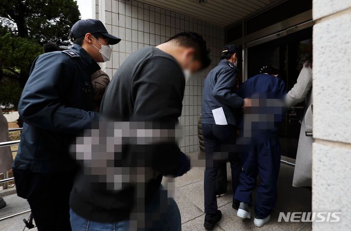 [서울=뉴시스] 홍효식 기자 = '영풍제지 주가조작' 관련 자본시장법 위반 혐의를 받는 김모 씨 등 3명이 지난달 17일 서울 양천구 서울남부지방법원에서 열린 영장실질심사에 출석하고 있다. 2023.11.17. yesphoto@newsis.com |