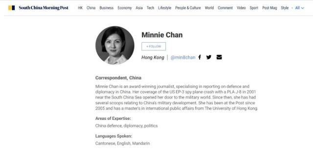중국 베이징에서 실종됐다는 의혹을 받은 미니 찬 홍콩 사우스차이나모닝포스트(SCMP) 소속 기자. SCMP 홈페이지 캡처 |