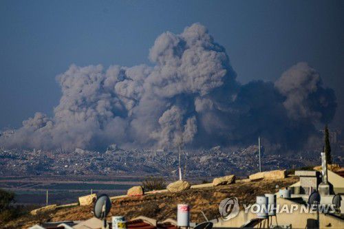 '이스라엘 공격 재개' 가자지구 집어삼키는 연기(이스라엘-가자지구 국경=연합뉴스) 1일(현지시간) 이스라엘 남부의 가자지구 접경지에서 촬영한 사진에 이스라엘의 공격을 받은 건물에서 연기가 피어오르는 모습이 담겨 있다. 이스라엘군은 이날 팔레스타인 무장 정파 하마스가 휴전 협정을 위반했다며 일시 휴전 7일 만에 전투를 재개했다. 2023.12.01 besthope@yna.co.kr