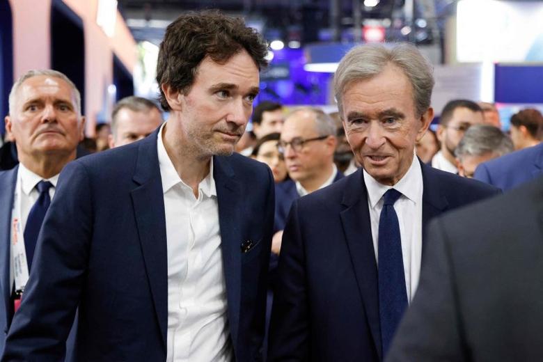 세계 3위 부자로 알려진 베르나르 아르노 루이비통모에헤네시(LVMH) 회장(오른쪽)과 LVMH의 지주회사인 LVMH 홀딩스의 최고경영자(CEO)를 맡고 있는 장남 앙투안 아르노가 지난 6월 15일 프랑스 파리에서 열린 유럽 최대 창업초기기업(스타트업) 박람회 '비바테크놀러지'에 참석해 대화하고 있다.AFP연합뉴스 |