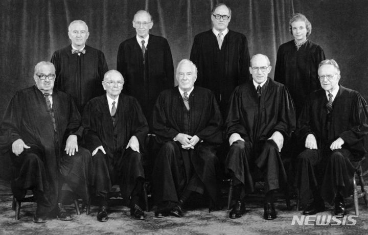 [워싱턴=AP/뉴시스]1982년 미국 최초의 여성 대법관으로 임명된 샌드라 데이 오코너 대법관(뒷줄 오른쪽 끝)이 1일(현지시간) 아리조나주 피닉스에서 93세로 서거했다. 2023.12.2.
