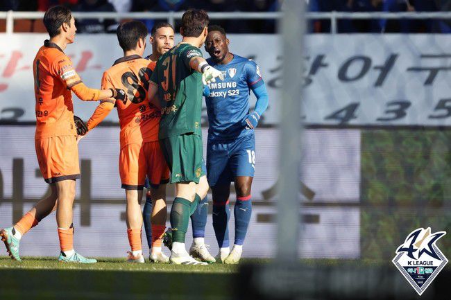 수원 삼성이 위기를 넘겼다. 후반 8분 황문기와 알리바예프가 강한 압박으로 상대 볼을 뺏었다. 문전으로 진입한 다음 컷백했지만 슈팅까지 연결되진 않았다. 후반 9분 서민우가 아코스티를 막는 과정에서 태클을 범했고 주심은 옐로카드를 꺼냈다.