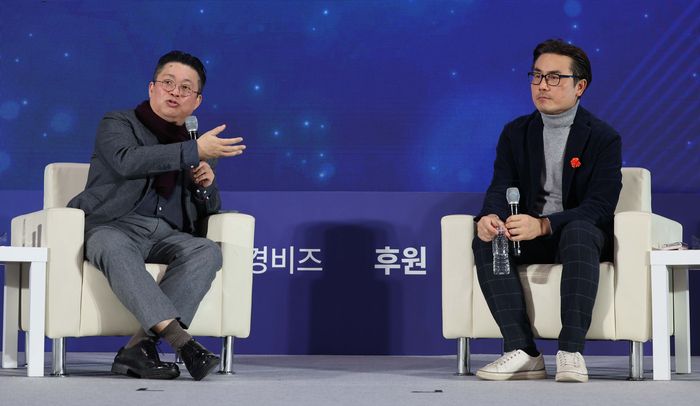 2일 윤지호 이베스트투자증권 전무와 박세익 체슬리투자자문 대표가 서울 서초구 양재aT센터에서 열린 서울머니쇼플러스 ‘우리는 지금 어디에 있나 : 투자의 새로운 사이클을 배워라’ 세션에서 대담한 가운데 두 연사의 내년 증시 전망이 엇갈렸다.