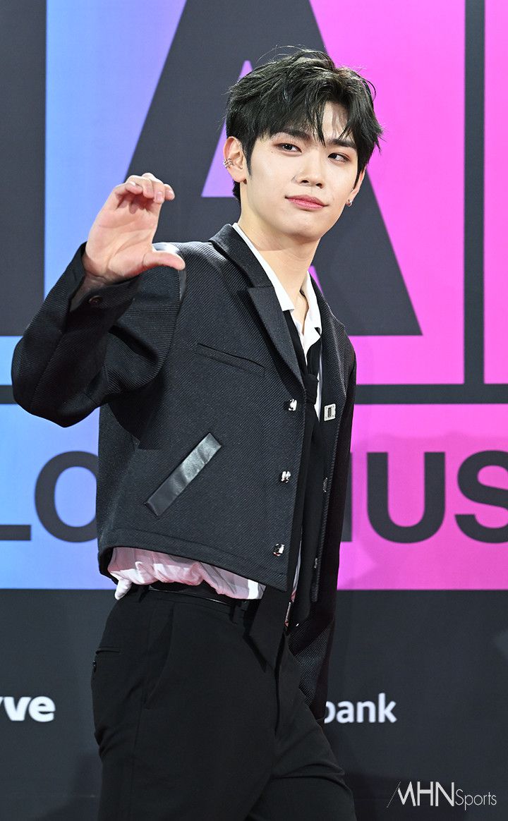 이날 제로베이스원 김태래가 포토타임을 갖고 있다.