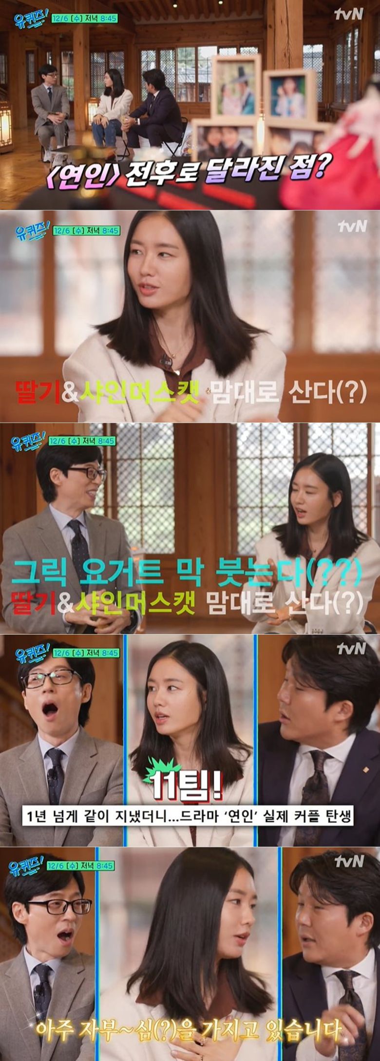 3년 만에 '유퀴즈'를 다시 찾은 안은진은 '연인' 전후로 달라진 점에 대해 "딸기랑 샤인머스캣을 마음대로 산다. 그릭요거트도 막 붓는다"고 솔직히 말해 폭소를 안겼다.