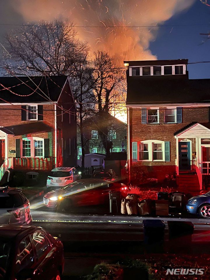 [알링턴=AP/뉴시스]미국 버지니아주 알링턴카운티 경찰은 지난 4일(현지시간) 오후 8시25분께 알링턴카운티 한 주택에서 발생한 폭발사고로 경찰관 3명이 경미한 부상을 입었고 현재 조사가 진행 중이라고 5일 밝혔다. 용의자는 아시아계 남성으로 한국계일 가능성도 배제할 수 없다. 사진은 전날 폭발이 일어난 모습. 2023.12.06 |