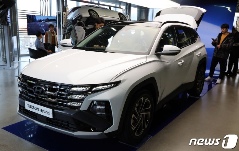 (서울=뉴스1) 김진환 기자 = 현대자동차가 6일 준중형 스포츠유틸리티차량(SUV) '투싼'의 부분변경 모델인 '더 뉴 투싼'을 출시한다. ‘더 뉴 투싼’은 현대차가 2020년 9월 출시된 4세대 모델의 상품 경쟁력을 끌어올려 3년여 만에 선보이는 부분변경 모델이다. 사진은 지난 5일 서울 강남구 언주로 현대 모터스튜디오 서울에서 공개된 ‘더 뉴 투싼’ 하이브리드. 2023.12.6/뉴스1