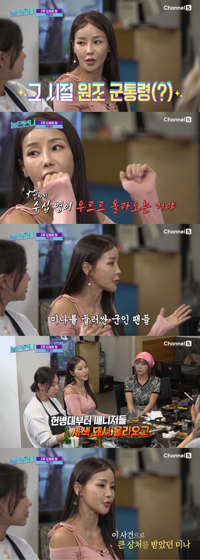 이날 방송에서 미나는 과거 '원조 군통령'이었던 시절 군 행사에서 당했던 성추행 피해를 고백했다.