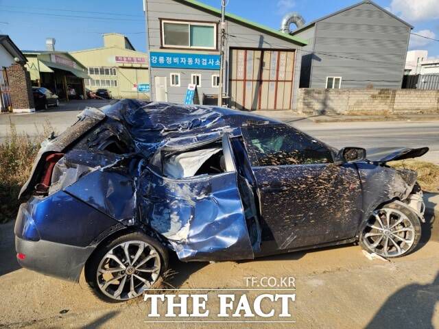 2022년 12월 6일 강릉시 홍제동, 할머니와 쌍용차 티볼리 차량을 타고 있던 이도현 군은 급발진 의심 사고로 숨졌다. 사진은 사고 후 형체를 알아 보기 힘들게 파손된 티볼리 차량 모습./ 고(故) 도현 군 부친 이상훈 씨 제공