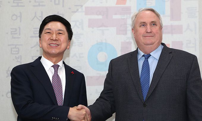 김 대표와 인 위원장은 이날 오후 5시 국회 당대표실에서 20여분간 면담했다. 지난달 17일 이후 19일 만에 이뤄진 두 사람의 회동은 40여분간 화기애애한 분위기에서 이어졌던 지난번과 달리 비교적 냉랭한 분위기 속에서 짧게 끝났다.