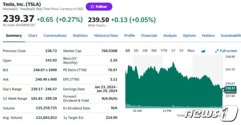 ◇ 테슬라 소형차 모델2 생산 : 테슬라는 보다 작은 모델인 ‘모델2’를 생산한다는 소식으로 소폭이나마 상승 마감했다. 이날 뉴욕증시에서 테슬라는 전거래일보다 0.27% 상승한 239.37 달러를 기록했다.