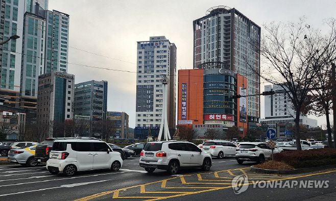 6일 오후 울산시 남구와 울주군 일대에서 발생한 정전으로 공업탑 일대 신호등이 꺼져 차들이 서행하고 있다. 이날 옥동변전소 변압기 문제로 남구와 울주군 일부 지역이 정전됐다./연합 |
