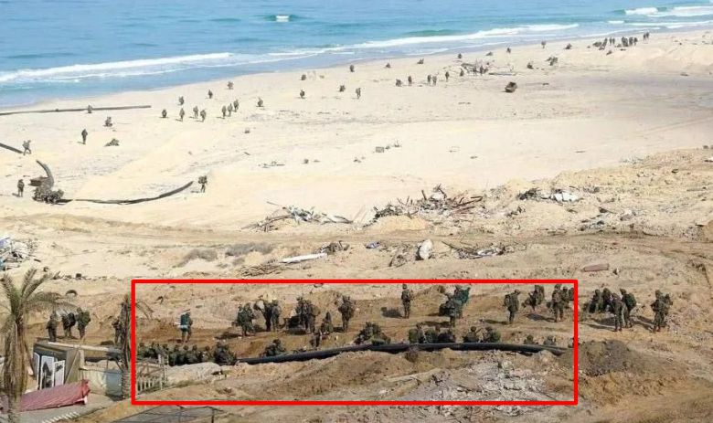 수십 여 명의 이스라엘방위군(IDF) 모습이 해변에서 파이프를 설치하고 있는 모습이 사진으로 공개됐다. |