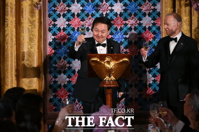 뉴욕타임스 '올해 가장 스타일리시했던 인물 71명'에 윤석열 대통령이 포함됐다. 지난 4월 26(현지시간) 미국을 방문해 국빈 만찬 중인 윤 대통령. /대통령실 제공 |