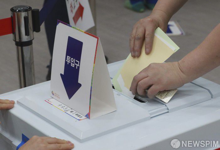 [서울=뉴스핌] 이형석 기자 = 제8회 전국동시지방선거날인 1일 오전 서울 강북구청에 마련된 수유3동 제1투표소에서 시민들이 투표를 하고 있다. 투표시간은 오전 6시 ~ 오후 6시까지, 코로나19 확진 유권자는 오후 6시 30분 ~ 오후 7시 30분까지다. 2022.06.01 leehs@newspim.com