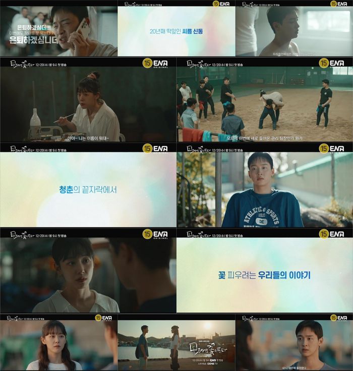 20일 첫 방송되는 ENA 새 수목드라마 ‘모래에도 꽃이 핀다’(연출 김진우, 극본 원유정) 측은 7일, 은퇴 위기 김백두(장동윤 분)의 청춘 2막이 기대되는 메인 예고편을 공개했다. 무엇하나 뜻대로 되지 않는 청춘의 끝자락에서 꽃피울 꿈, 사랑이 어떻게 그려질지 첫 방송이 기다려진다.