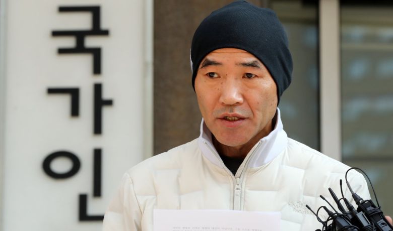 북한군에 피살된 해양수산부 공무원 이대준 씨의 친형 이래진 씨가 28일 서울 중구 국가인권위원회 앞에서 더불어민주당 기동민 의원과 주철현 의원 진정 접수 기자회견을 하고 있다. 2022.10.28. 뉴스1 |