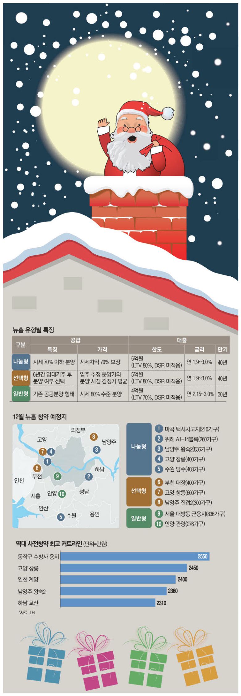 12월 사전청약에선 부천 대장(400가구), 고양 창릉(600가구), 남양주 진접2(300가구) 등에서 선택형 뉴홈 분양주택이 공급될 예정이다.