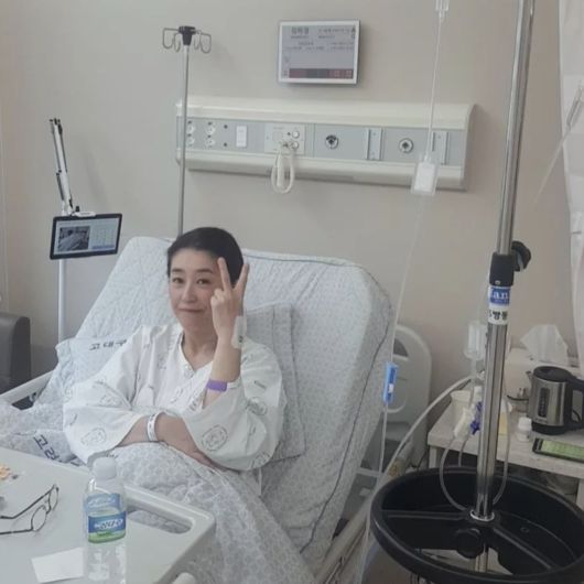 이 글과 함께 입원 당시 사진도 함께 공개했다. 환자복을 입은 채 병상에 있지만 특유의 밝은 미소를 잃지 않고 있는 김미경이다.