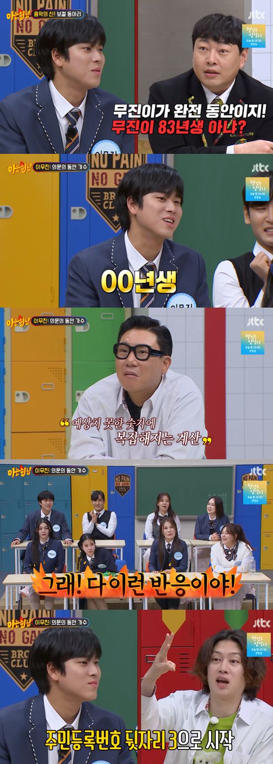 이에 이무진은 "이걸 보고 굉장히 양심에 찔렸다. 이게 나다"라며 "그만 말하고 싶은데 00년생이다"라고 털어놨다. 그러자 멤버들은 모두 이무진의 나이를 계산하기 시작했다.