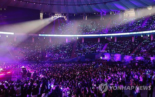 한국방문의 해 기념 K팝 공연(서울=연합뉴스) 류효림 기자 = 10일 오후 서울 송파구 잠실실내체육관에서 열린 2023~2024 한국방문의 해 기념 K·Link 페스티벌에서 관객들이 콘서트를 즐기고 있다. 2023.12.10 ryousanta@yna.co.kr