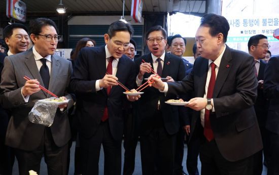 尹 지난 6일 재계 총수들과 깡통시장 방문