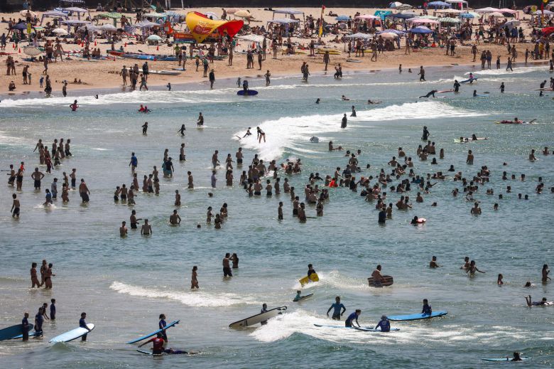 9일(현지 시각) 호주 시드니 본다이 비치에서 사람들이 해수욕을 즐기고 있다. 여름을 맞은 호주에서는 최근 전국적으로 40도가 넘는 폭염이 이어지고 있다. /AFP 연합뉴스 |
