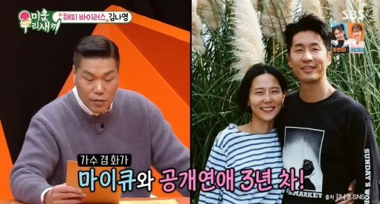 (엑스포츠뉴스 김유진 기자) 방송인 김나영이 '미운 우리 새끼'에 출연해 연인인 가수 겸 작가 마이큐와의 열애를 언급했다.