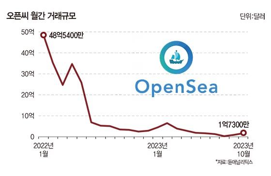 NFT 거래규모도 하락했다. 지난해 4월 오픈씨의 NFT 거래 규모는 34억8000만달러에서 올 1월 4억5000만달러까지 줄어들었다.