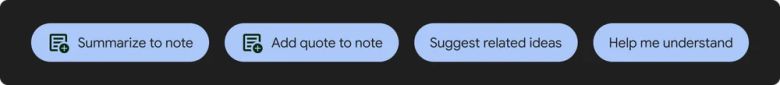 또 원본 문서에서 정보를 더 쉽게 추출할 수 있다. 사용자가 노트북LM에 업로드된 문서나 웹페이지의 특정 구절을 선택하면 내장된 챗봇이 자동으로 해당 내용을 새로운 노트로 요약하고 기술 언어 또는 복잡한 아이디어를 이해하는 데 도움을 준다. 메모를 작성하는 동안 AI는 문장을 다듬거나 다듬을 수 있는 도구를 제공하거나 방금 작성한 내용을 기반으로 소스에서 관련 아이디어를 제안한다.