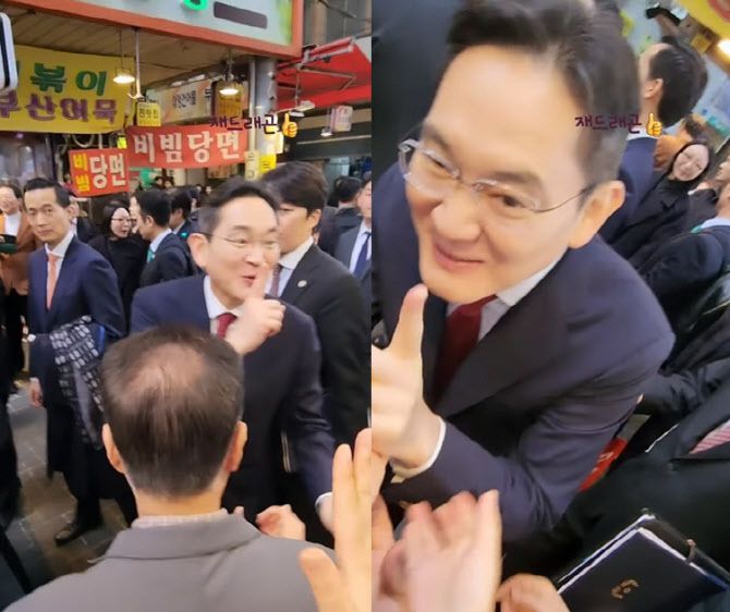 [이데일리 김혜선 기자] 최근 이재용 삼성전자 회장이 부산 깡통시장에 방문했을 당시 찍힌 익살스러운 표정이 화제가 된 가운데 당시 이 회장이 손가락을 입에 대며 ‘쉿’을 한 모습이 담긴 영상도 나왔다. 이 회장은 자신의 이름을 연호하며 환호하는 시민들을 자제시키며 “이름을 부르지 말아 달라”고도 부탁했다.