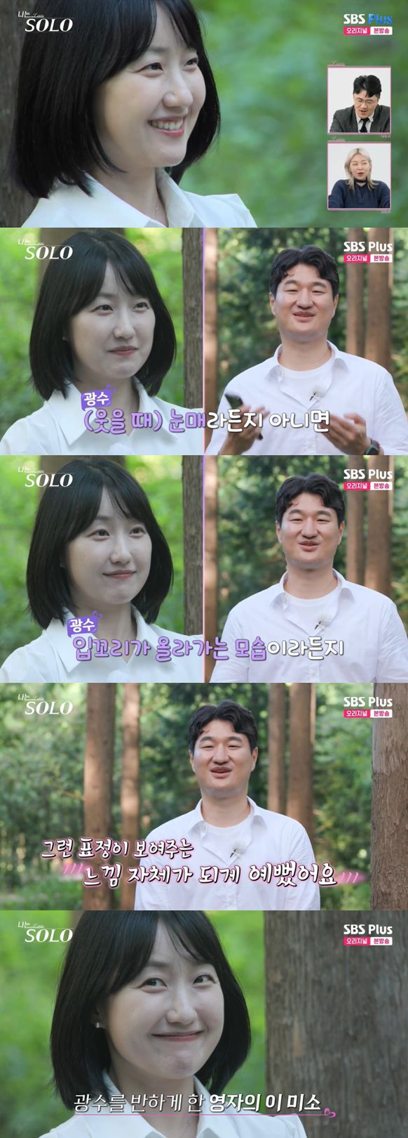광수는 영자 선택 이유로 "웃을 때 표정 선이 제 이상형이다"며 "눈매라든지 아니면 입꼬리가 올라가는 모습이라든지 그런 표정이 보여주는 느낌 자체가 되게 예쁘셨다"고 밝혔다.