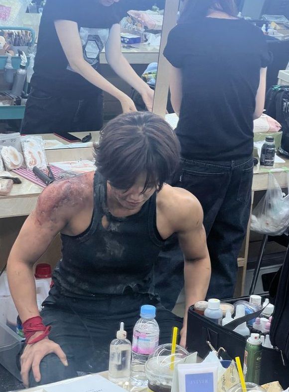 공개된 사진은 넷플릭스 드라마 ‘스위트홈’ 촬영 현장 속 그의 모습. 이시영은 한껏 펌핑된 팔 근육과 갈라지는 등 근육으로 놀라움을 자아냈다.