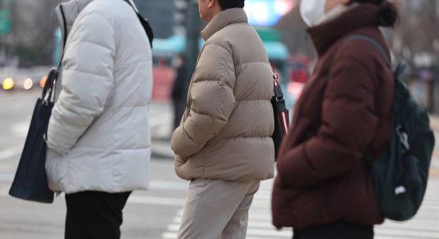 ▲15일 통계청 조사 결과를 보면 20대 이하의 가구소득은 2018년 3363만 원에서 2021년 3114만 원으로 감소했다. 비가 그치며 아침 기온이 전날보다 큰 폭으로 떨어진 13일 오전 서울 종로구 광화문네거리에서 출근하는 시민들이 외투주머니에 손을 넣고 있다. ⓒ연합뉴스