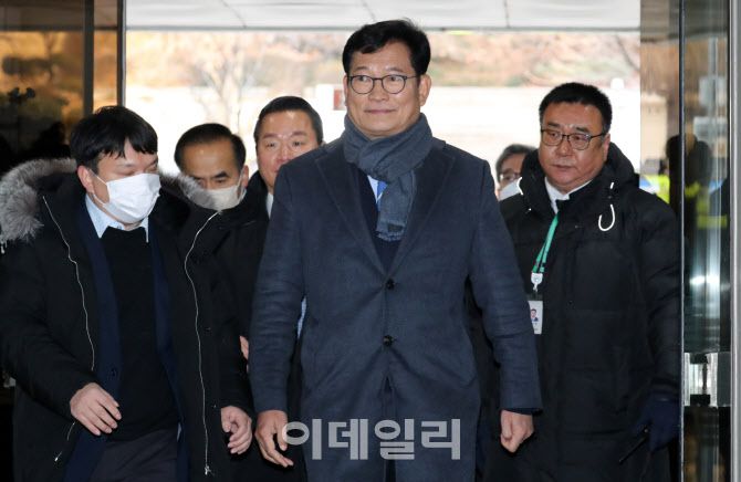 [이데일리 방인권 기자] 더불어민주당 전당대회 돈 봉투 살포 의혹을 받고 있는 송영길 전 더불어민주당 대표가 18일 서울 서초구 서울중앙지방법원에서 열리는 구속 전 피의자 심문(영장실질심사)에 출석하고 있다.