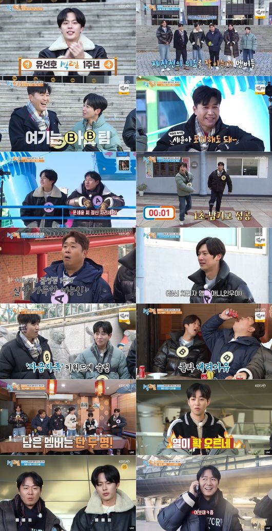 이날 멤버들은 2주 연속 KBS 본관 앞에 모여 새로운 여행의 포문을 열었다. 이번 여행의 의미는 남달랐다. 막내 유선호가 ‘1박 2일’ 고정 멤버로 합류한 지 1주년이 됐기 때문. 유선호의 1주년을 기념해 형님들은 환호와 박수갈채로 유선호를 축하해줬고 제작진 또한 고가의 제작비를 들인 역대급 스케일의 축하 행사를 준비해 시선을 사로잡았다.