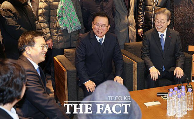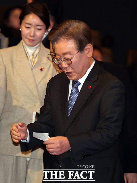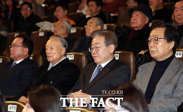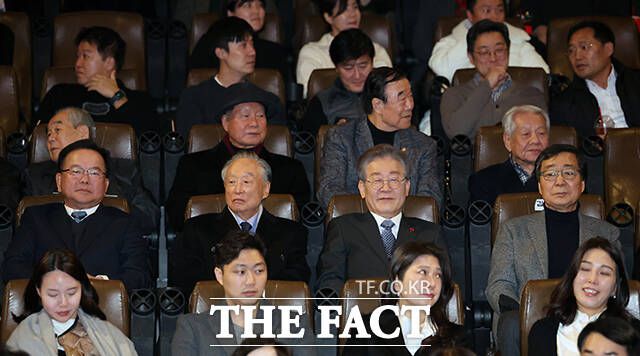 [더팩트ㅣ장윤석 기자] 이재명 더불어민주당 대표와 김부겸 전 총리를 비롯한 참석자들이 18일 오후 서울 용산구 CGV 용산 아이파크몰에서 열린 '길 위에 김대중' VIP 시사회에 참석하고 있다.