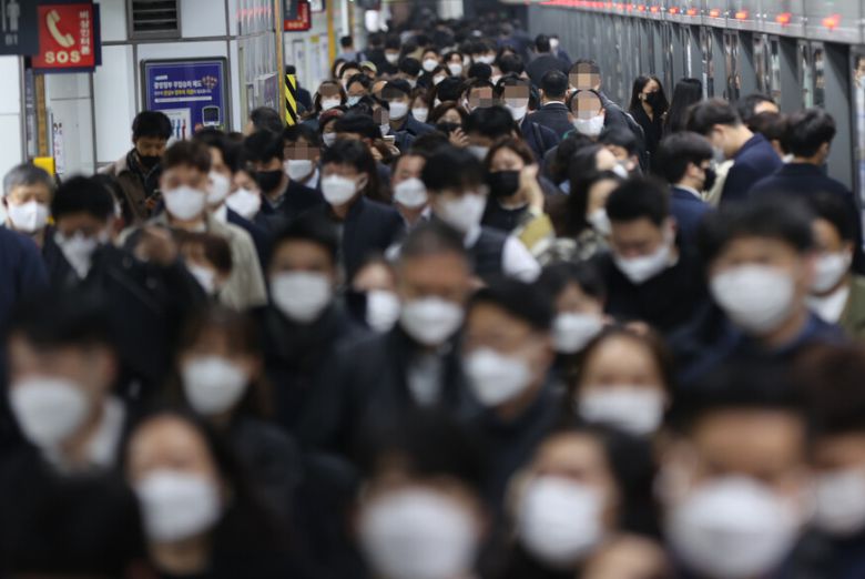 서울 지하철 5호선 광화문역에서 마스크를 쓴 출근길 직장인들이 발길을 재촉하고 있다. 연합뉴스