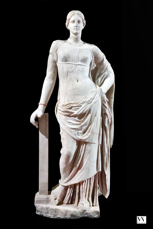 ‘바다의 아프로디테’. 정면을 바라보고 서 있는 아프로디테의 자태가 눈부시게 아름다운 1세기 대리석 조각상이다. 몸에 달라붙어 있는 얇은 튜닉은 그녀가 방금 물에서 나왔다는 것을 표현한다. 120×51×30㎝. |