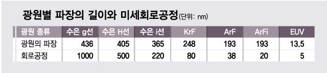 반도체 기술경쟁의 승패는 한장의 웨이퍼(원판) 위에서 누가 더 미세한 칩을 설계해 더 많은 칩을 생산하느냐에 따라 갈린다. 그 핵심이 반도체 전공정의 약 60%를 차지하는 노광기술이어서 반도체 생산기업들이 여기에 목을 매는 것이다.
