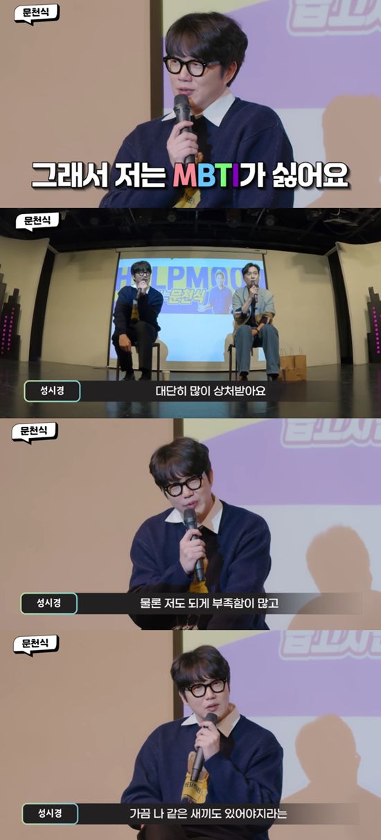 성시경은 "그건 성격의 문제다. 우리가 다 성격이 다르다. 그래서 MBTI가 싫다. 저는 너무 복잡한 사람이다. 내 안에 내가 너무 많다. 노래할 때는 완전 F고, 원래는 완전 T다. 나를 모르는 사람 앞에서는 E지만, 나를 알아보면 슈퍼 I다. 여행갈 때 계획형이지만 (호텔)방에 나가고 싶지 않다. 룸서비스를 시킨다. 물론 우리 직업이 더 할 수 있다. 감정을 쓰면서 연기하는 사람들 아닌가"라고 말했다.