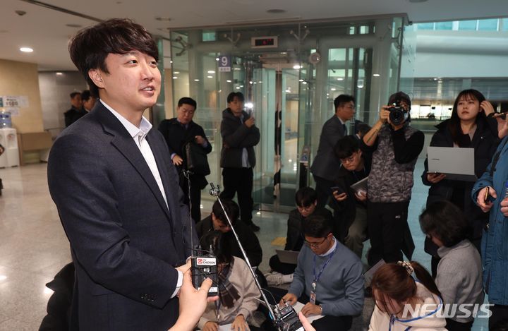 [서울=뉴시스] 조성봉 기자 = 지난 17일 오후 서울 여의도 국회 의원회관에서 열린 새로운선택 창당대회에 참석한 이준석 전 국민의힘 대표가 신당 창당 관련 취재진의 질문에 답변하고 있다. 2023.12.17. suncho21@newsis.com |