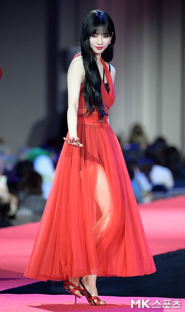 에스파 카리나가 포토타임을 갖고 있다.