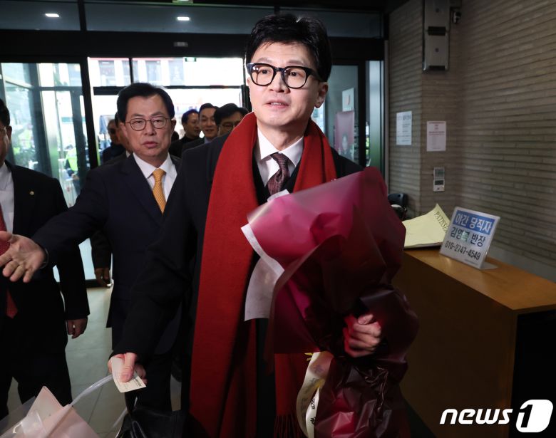 한동훈 국민의힘 비상대책위원장이 26일 오후 서울 여의도 국민의힘 당사로 들어가고 있다. 2023.12.26/뉴스1 ⓒ News1 송원영 기자 |
