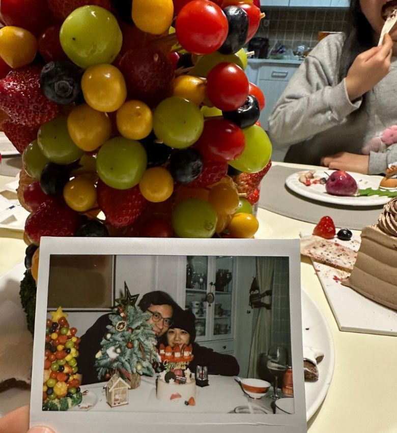 사진에는 딸 썸머가 찍어준 폴라로이드 사진 한 장이 담겼다. 탕웨이와 김태용 감독은 크리스마스 트리와 케이크를 앞에 두고 다정하게 사진을 찍고 있는 모습이다. 폴라로이드 사진 뒤에는 딸 썸머가 과일을 맛있게 먹고 있는 모습도 포착돼 있어 눈길을 끈다.